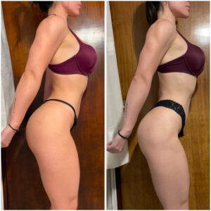 Nuestro objetivo principal era una mejora de la composición corporal, mejorando el tono muscular y reduciendo su porcentaje graso. Además de focalizar en la disminución de la celulitis en el tren inferior. Sandra ha hecho sus entrenamientos en casa y ha bajado 6kg en las 6 semanas.